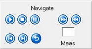 Use the Navigate Panel  to move around in an audio file, as well as to make corrections to the alignment, as described in Rehearsal Review.  Clicking on the buttons in the image above shows a description of what they do.  The buttons will appear blue when they are available to be used (when you haved either completed a rehearsal or loaded a past rehearsal).  If the focus is on the Live Panel you can shift focus to the Navigate Panel by either using the Focus Toggle button or by  clicking directly on the Navigate Panel.